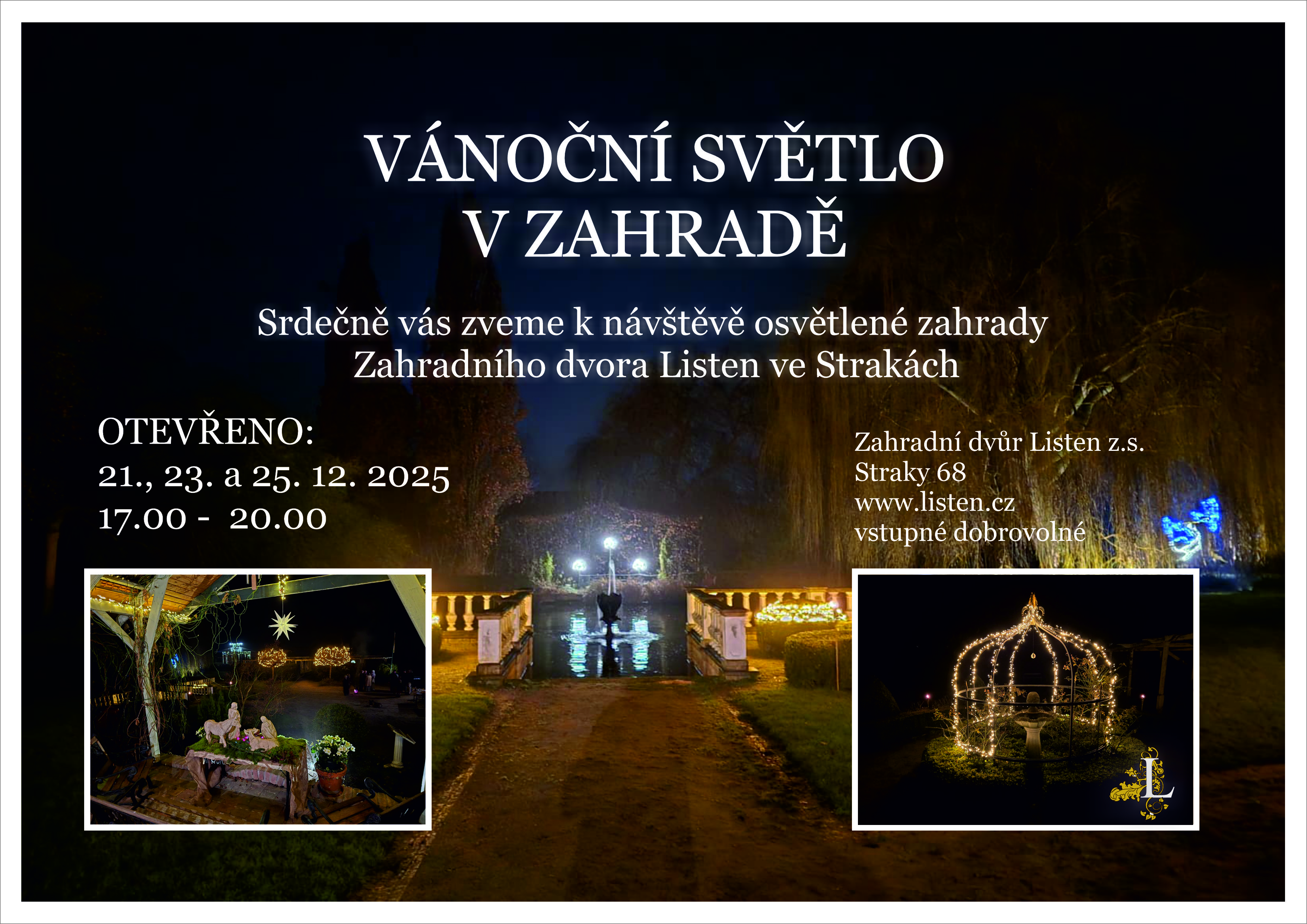 SRDEČNĚ VÁS ZVEME K PROŽITÍ KONCE ROKU V ROZSVÍCENÉ ZAHRADĚ